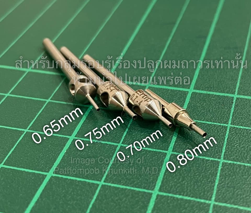 บางกอที่มีผม 3-4 เส้น หากเล็งไม่ดี การใช้หัวเจาะเล็กก็อาจจะตัดผมขาด หรือเฉือนส่วนสเต็มเซลล์เสียหายได้ บางครั้งจึงต้องตัดสินใจเลือกหัวเจาะที่ขนาดใหญ่ขึ้นมาครับ